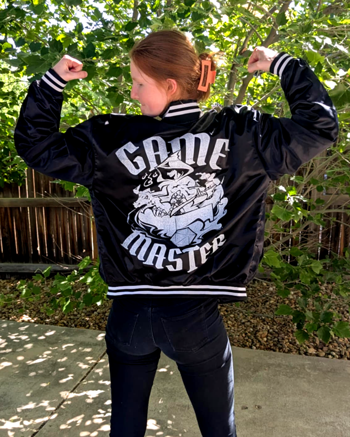 Whether you’re a first time GM, a forever GM, or a group of players looking to reward the game MVP for all their hard work, our GM Jacket is the perfect treat! A satin bomber jacket featuring some of our favorite adventurers behind the screen, the GM Jacket is a a celebration of our favorite stories and those who made them. Gather your party and pick one up today!